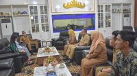 Wali Kota Metro, Bambang Iman Santoso, menerima audiensi dua mahasiswi Program Studi Pendidikan Guru Sekolah Dasar (PGSD) Universitas Lampung yang sedang menempuh pendidikan di Kota Metro, di Ruang Kerja Wali Kota Metro, Selasa (06/01/2026).